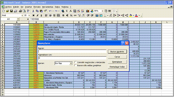 1.- En el menú "Edición", seleccione la opción "Reemplazar".Aparecerá la siguiente pantalla |
